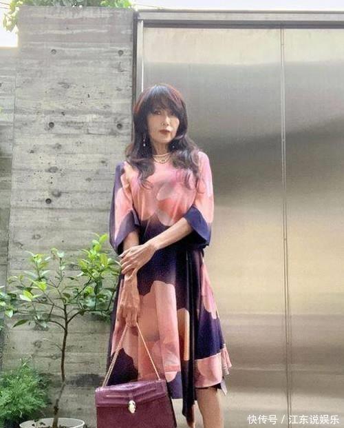 工藤静香年纪渐长后,轮廓分明,眉眼细长,给人一种比较凌厉强势的感觉,再加上个子挺拔,自带一种气场,穿得成熟大气更合适。平日里她的裙子基本以暗色调为主,为了不显得太过沉闷,会搭配一些色彩暗淡但带有跳跃纹理的元素,增添一丝活力。一动一静、一明一暗,刚好营造出既沉稳又清新的微妙平衡感。