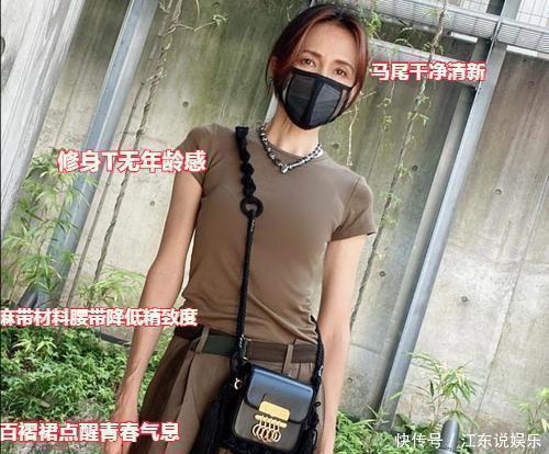 这身普通的T恤配短裤,一般人穿肯定土得掉渣,可她随意踩双板鞋,就能散发出满满的自信和英气,气场十足。身材和那股精神状态,简直跟二三十岁的超模差不多,谁能猜到她已经52岁了呢?