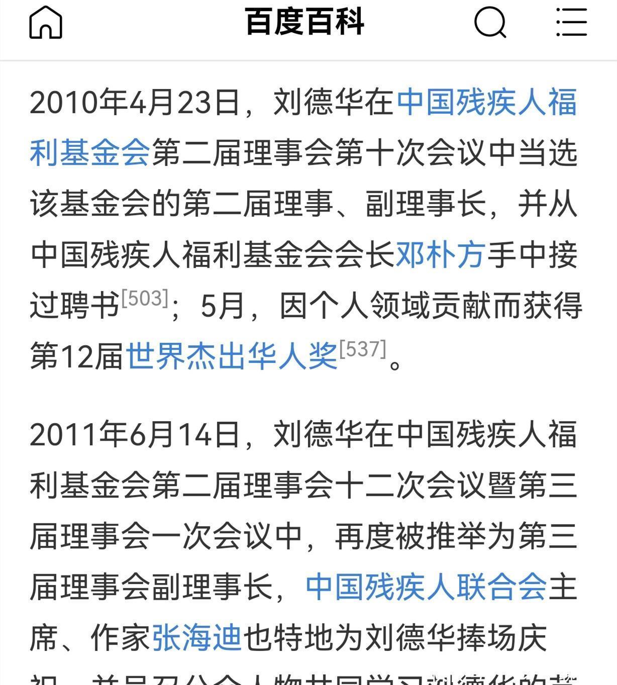 所以在2010年和2011年,刘德华连任两届中国残疾人,福利基金会副理事长