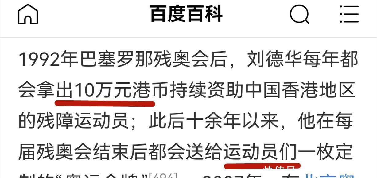 也正因为刘德华为中国的体育事业,对残障运动员,不惜代价的付出