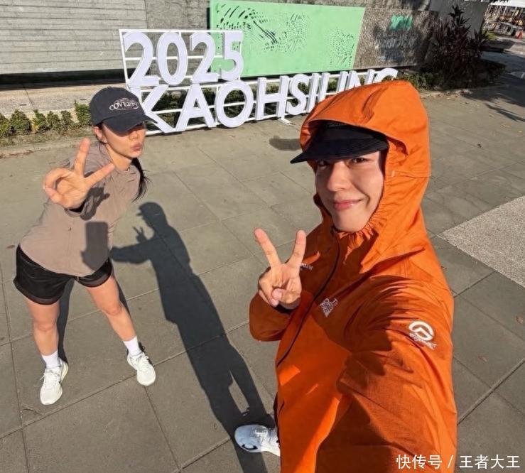 典礼当天早上,朴宝剑估计是习惯晨跑,就喊上李惠利一起。跑步地点是高雄中央公园,俩人没戴口罩,就这么自然地运动。照片里朴宝剑笑着比V,李惠利脸颊贴着他的比心,姿势超可爱。