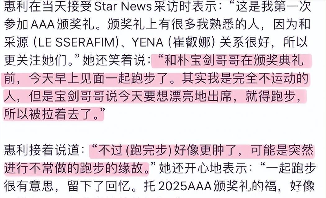 哎呀,你知道吗,就在12月6日高雄那个AAA颁奖典礼前,朴宝剑和李惠利居然一大早拉着对方去跑步,还拍了那种脸颊比心的合照,粉丝一看就炸锅了,直呼“泽善党终于等到售后糖”。