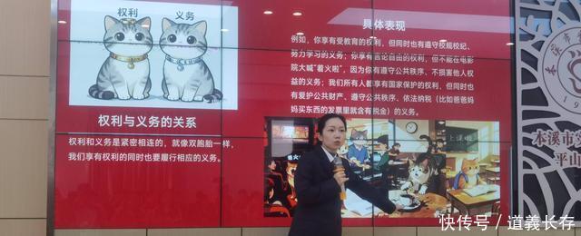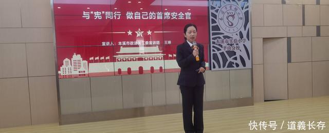 本溪市政法系统关工委法治宣讲团成员王琳为小学生讲宪法教育课。