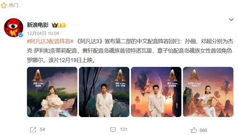 看到这样的情况,很多网友都忍不住说:直接给大电影去配音吧,票房会快速上涨,当这件事情的讨论热度还没下降的时候,网友们发现,又有2位当红演员要为电影配音,这部电影竟是《阿凡达3》。