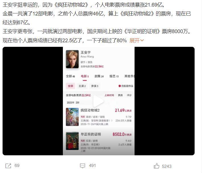 如果一部自己喜欢的明星,为电影配音了,粉丝们必定会去支持,就像粉丝们会支持喜欢明星主演的作品一样,除了配音引起争议外,王安宇和金晨直接吃到《疯狂动物城2》带来的红利,因为这部电影,王安宇的个人电影票房成绩上涨21.69亿,而金晨已经达到67亿。