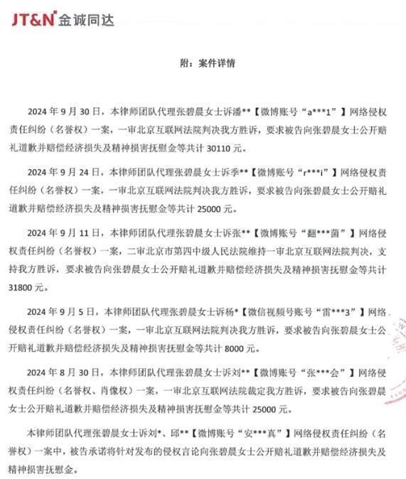 这一次,张碧晨选择了硬刚到底,她立刻委托律师收集证据,向法院提起诉讼,最后不仅胜诉了,造谣者还受到了相应的处罚,赔偿的款项也被张碧晨全额捐给了公益事业。