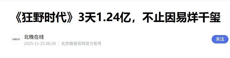 北晚在线2025-11-25《狂野时代》3天1.24亿,不止因易烊千玺